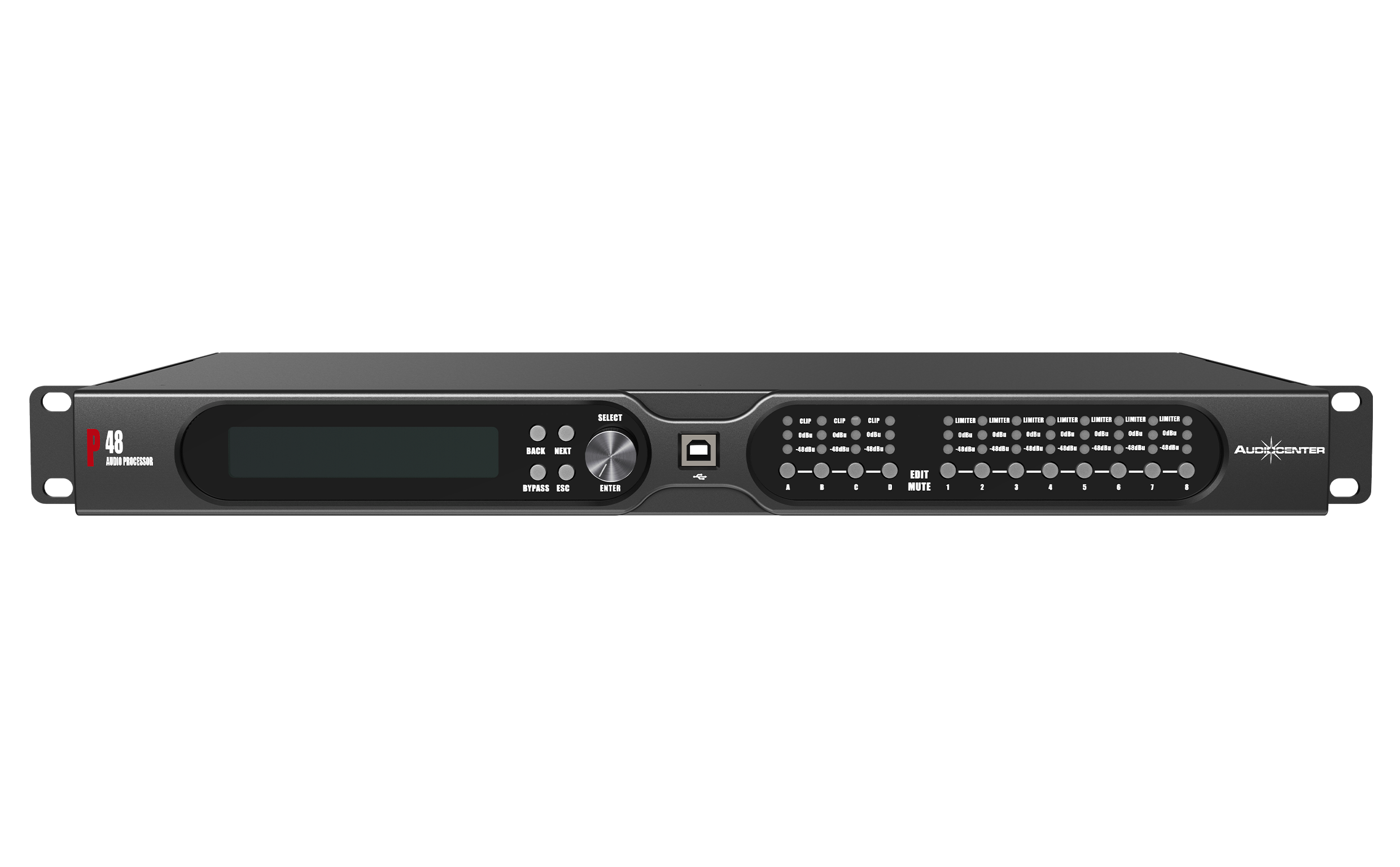 Le processeur audio professionnel P48 intègre une variété de fonctions DSP, y compris des compresseurs, des crossovers, des égaliseurs dynamiques, des délais, des égaliseurs, des filtres FIR d’entrée/sortie, des filtres de phase et des matrices de mixage.